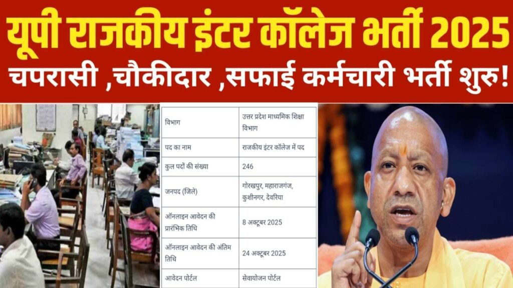 उत्तर प्रदेश माध्यमिक शिक्षा विभाग के अंतर्गत , गोरखपुर महाराजगंज कुशीनगर देवरिया जनपद में राजकीय इंटर कॉलेज में कुल 246 पदों के लिए नोटिफिकेशन जारी किया गया है , इसके लिए ऑनलाइन एप्लीकेशन फॉर्म सेवायोजन पोर्टल पर 8 अक्टूबर 2025 से लेकर के 24 अक्टूबर 2025 तक भर सकते हैं।